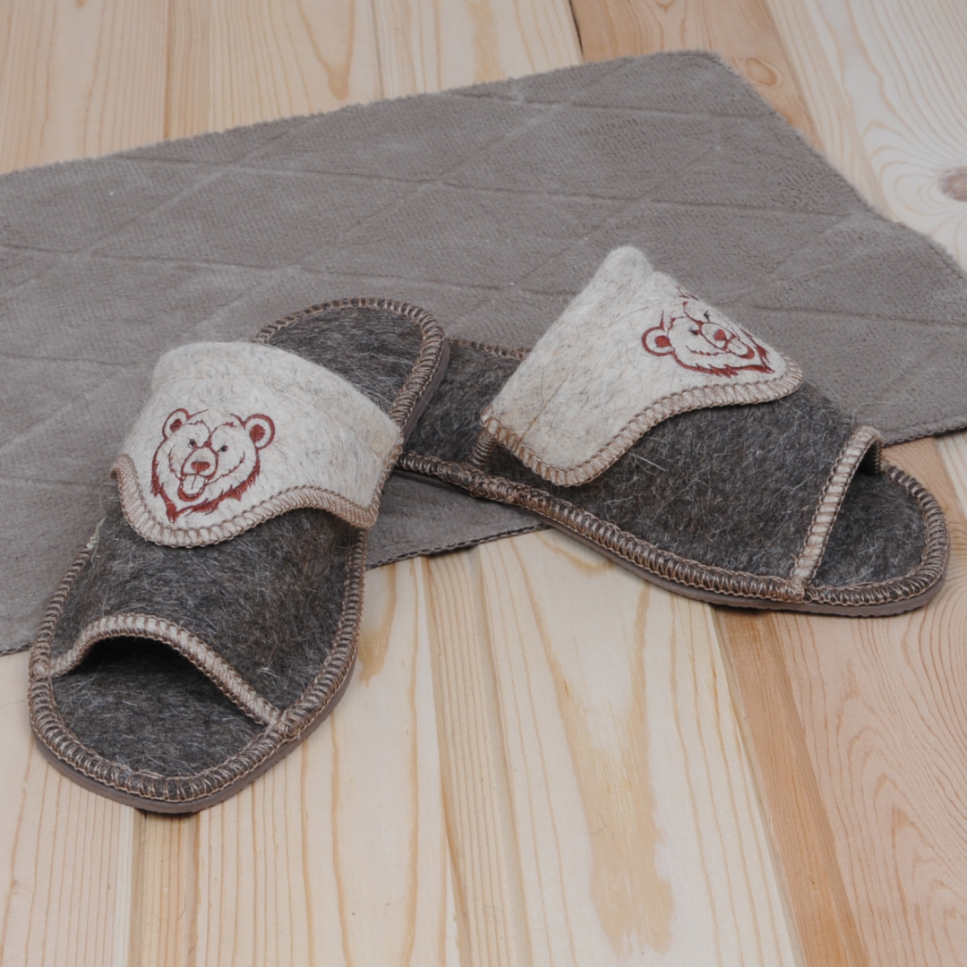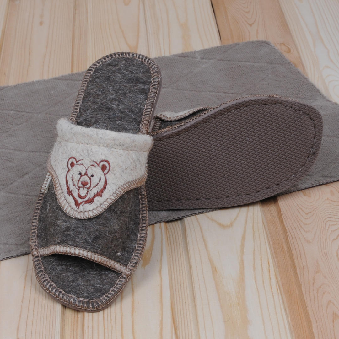 Перед вами мужские открытые войлочные тапочки Медведь, которые не только обеспечивают невероятный комфорт, но и стильно подчеркивают вашу мужественность. Украшенные изображением медведя, эти тапочки добавят особую нотку индивидуальности в ваш образ.