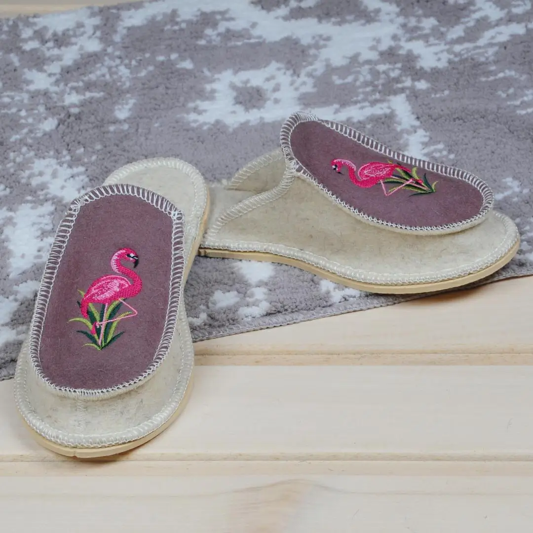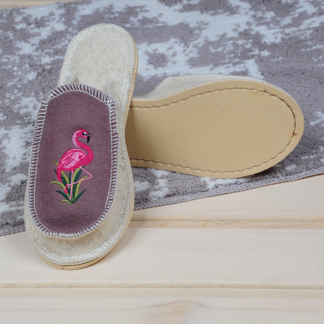 Очаровательные, яркие и стильные тапочки с оригинальной вышивкой Фламинго. Войлок прекрасно согревает, расслабляет и массирует ступни ног. Он превосходно поглощает и испаряет влагу, оставаясь при этом сухим. В таких тапочках не жарко летом и тепло зимой!