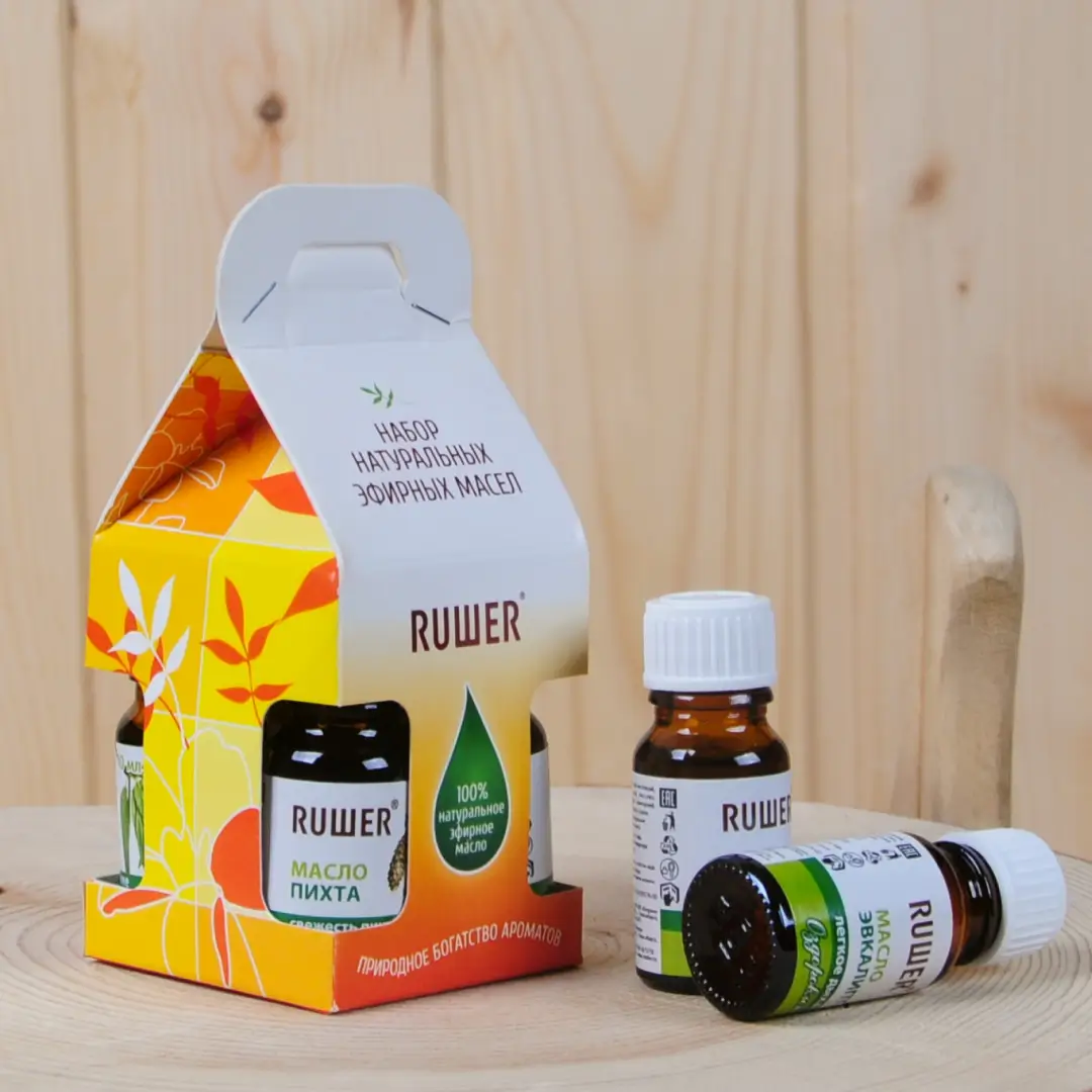 Набор масел "Рушер" 4*10 мл (сосна, апельсин, эвкалипт, пихта)  в Москве