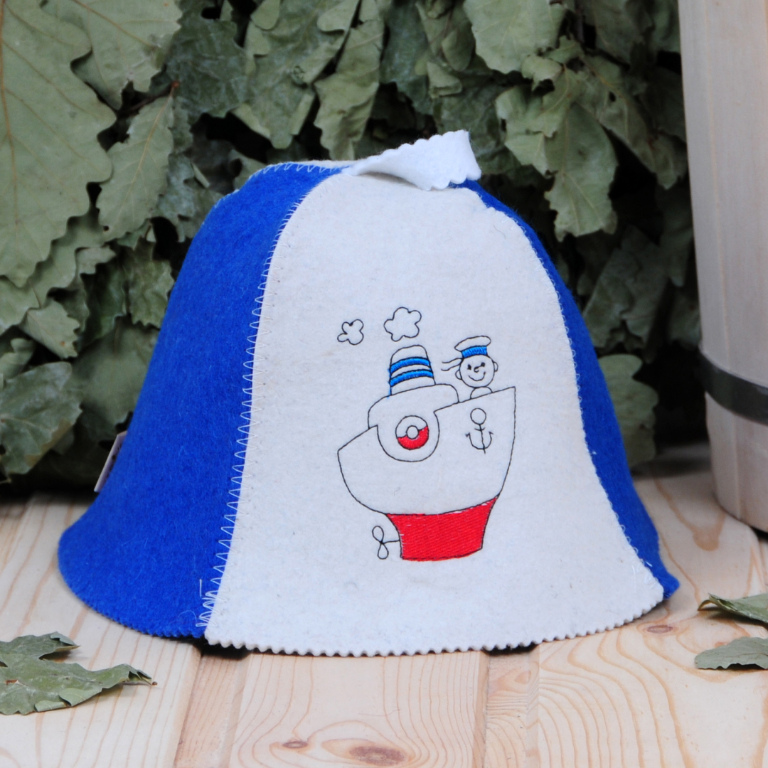 Изделие "Шапка для бани и сауны малая Морячок" для защиты волос и кожи головы от воздействия высокой температуры в бане и сауне.